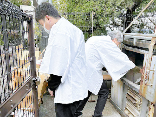 聖経『甘露の法雨』の読誦の中、人型が焼納されました。 和泉道場(岸和田)