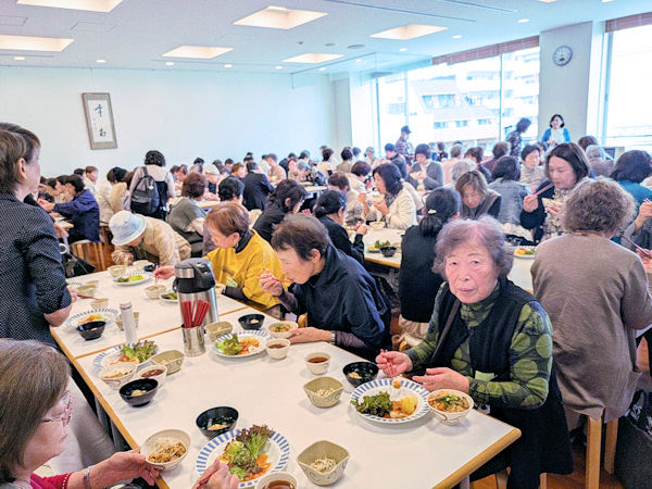 その取り組みの柱、「オープン食堂」10月5日に賑やかに開催されました。猛暑が過ぎ人通りも戻って96名(内新人45名)の方が入館されました(運営含むと144食と完売)。玄関前でスーツケースを持った親子連れに声をかけると「昨日万博に行って帰りは夜中になって