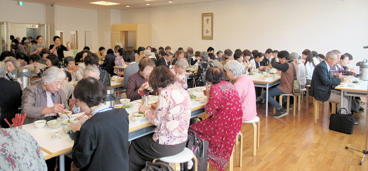 1週間後、やはりその100後を見据えた未来世代の為に「自然の恵みフェスタ」開催、486名の方が来館され、先月グーグル広告でオープン食堂にみえた親子も来て下さいました。「地球社会貢献活動」の集約と言える内容で、玄関入り口の「オーガニック野菜市」からはじまり、EM石鹸やヘチマたわしの販売(各務愛用)、フードドライブ回収箱の設置、そしてオープン食堂は6階も早々と満席になり、400食のカレーは予定の1時間前に完売でした。3階のカフェもオシャレなレイアウトで食事が更に美味しく感じられ、4階のふかし芋は甘かった。