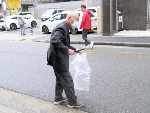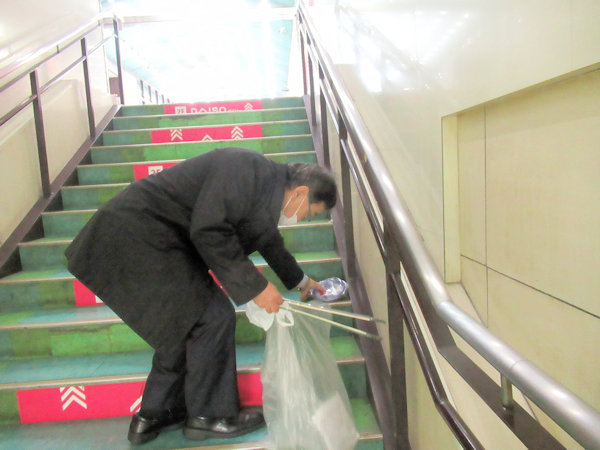 パチンコ屋横の階段通路に放置してあるお弁当ガラを回収