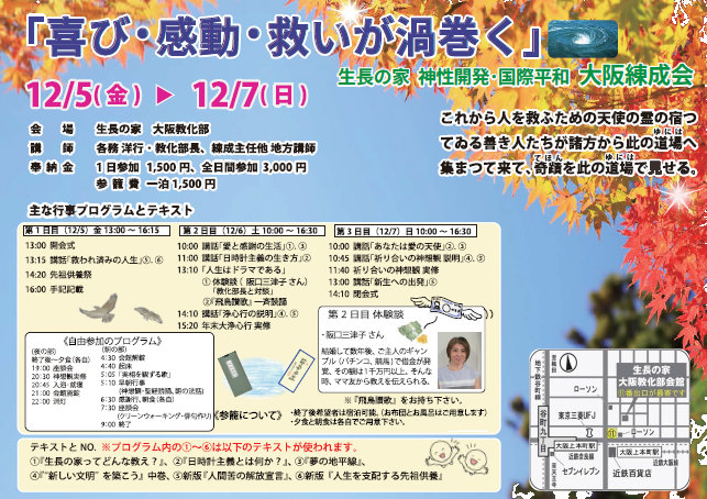 ◆日 時 :2025年12 月20 日 (土)〜 21 日 (日)◆会 場 :生長の家大阪教化部