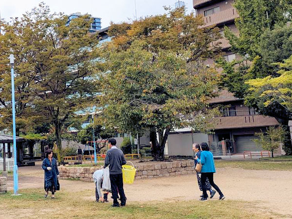 翌3日目早朝は、徒歩5分の「東高津公園」でクリーンウォーキングと俳句作り。当日は雨の予報でしたが、青空も広がる良い天気で、楽しく俳句作りに挑みました。ネット俳壇、10月の兼題は「秋の声」「冬近し」で皆さんの力作が生まれました。私も公園内をじっと観察して発見した「蝉の抜け殻」を題材にしていると、それは夏の季語で使えないと吉田鈴子さん(俳句の指導者)に言われてしまい、困っていると吉田さんが助け船で一句「抜け殻の大樹にありて秋の声」を詠んで下さいました。ペンネーム「各務れいこ」で投句しようかな(^0^)、と思っています。