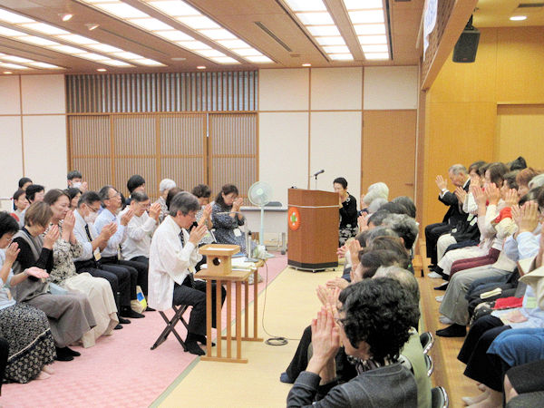 日時計主義(礼拝主義)の実践班の全員の讃嘆を全員で行います。会場内に喜びと拍手が響きます。