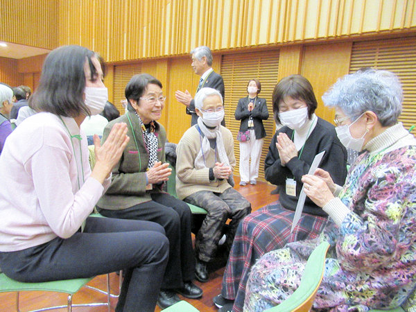 「○○さん大好き」を全員で読み、その後全員で讃嘆行を行います。(美点を見ることは目の開いた神想観・各務談)讃嘆は愛の表現、自他一体の表現で喜びが増し、会場内に喜びと拍手が響きます。