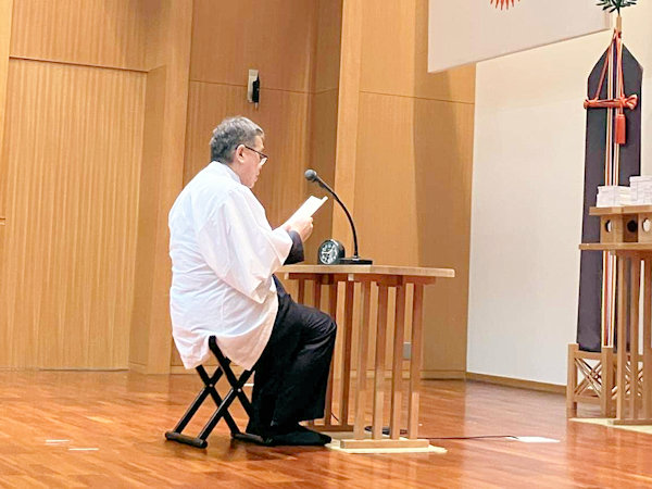 しかし、練成会は活気がありました。私は車椅子と松葉杖でしたが、初日から多くの方が参加されました。先祖供養祭では霊牌数が14,400柱と通常より2割ほど(約3,000柱)多く、新年早々多くの御霊様が祀られ、一家と教区の発展に繋がるものと嬉しく思いました。