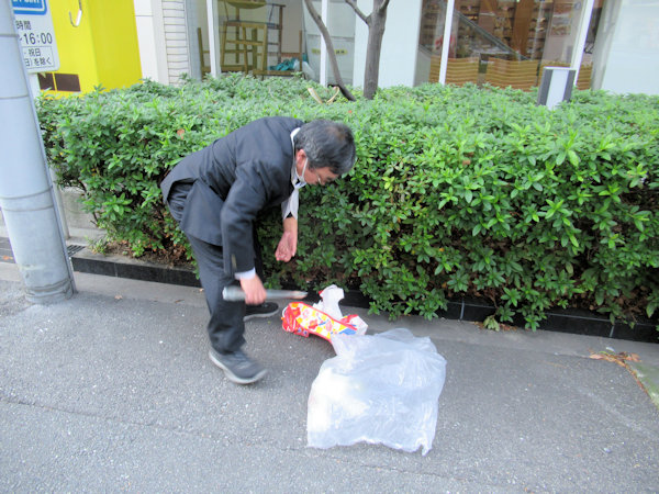 植え込みの中のごみまで丁寧に取って下さる新開さん