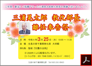 - 三浦晃太郎教化部長離任奉告祭(3月25日(水)開催)のご案内を更新しました