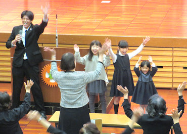 休憩を挟んでから笑いの練習、喜びの体験発表があり、その後の各務洋行・教化部長のご講話では、「神想観の経(たて)と、感謝行や先祖供養の緯(よこ)が揃って運命が開けてくる」という事を具体的に分かりやすくご指導頂きました。
